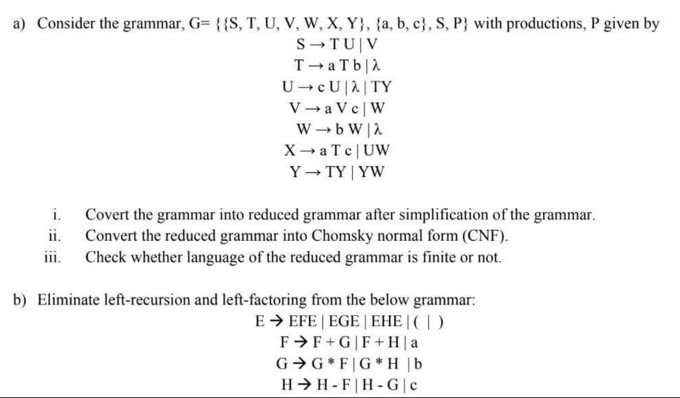 Solved A Consider The Grammar G S T U V W X Y Chegg Com